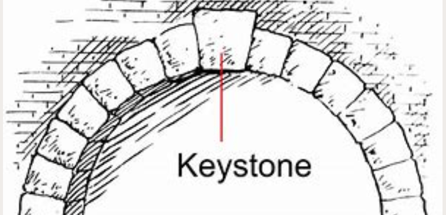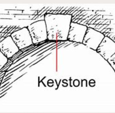 By the way, a keystone is a central stone at the summit of an arch, locking the whole together.